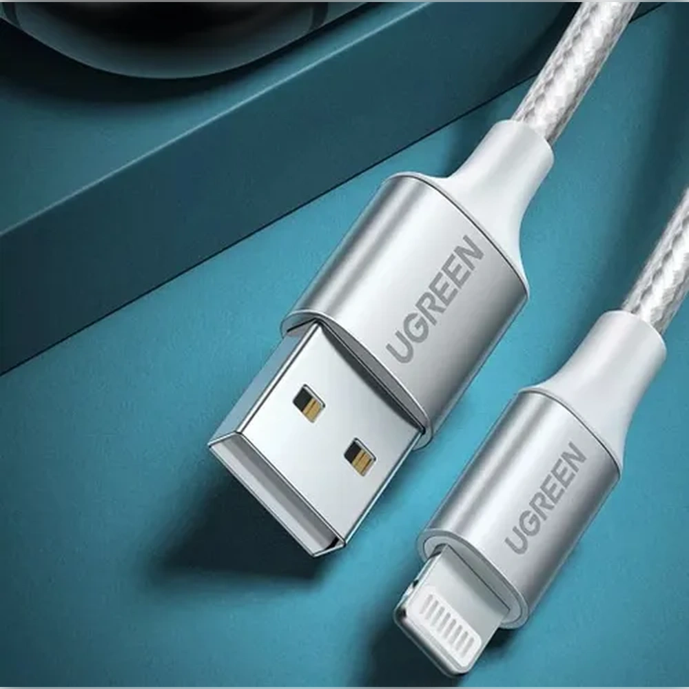 Cable trenzado UGREEN USB-A a Lightning MFi de 1 m, resistente y rápido, ideal para cargar y sincronizar dispositivos Apple.