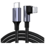 Cable UGREEN USB-C a Lightning en ángulo de 90°, resistente y certificado MFi, ideal para carga rápida y uso cómodo en dispositivos Apple.
