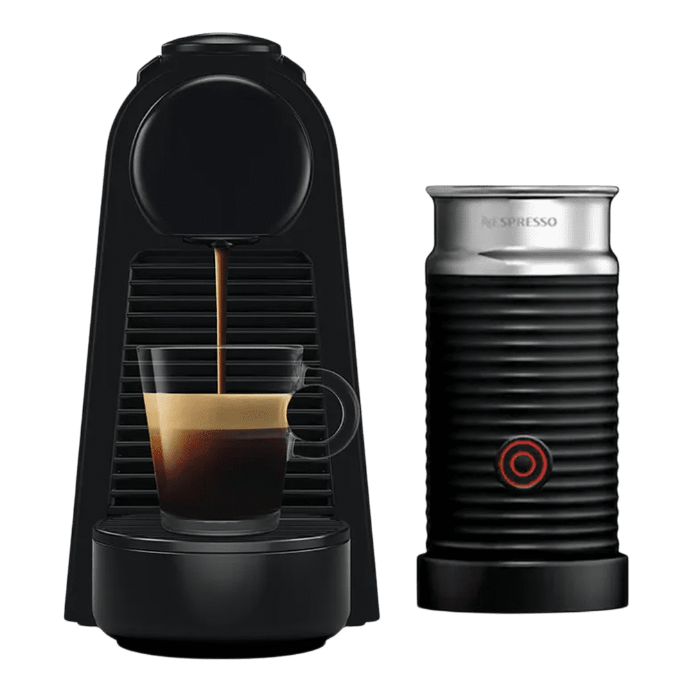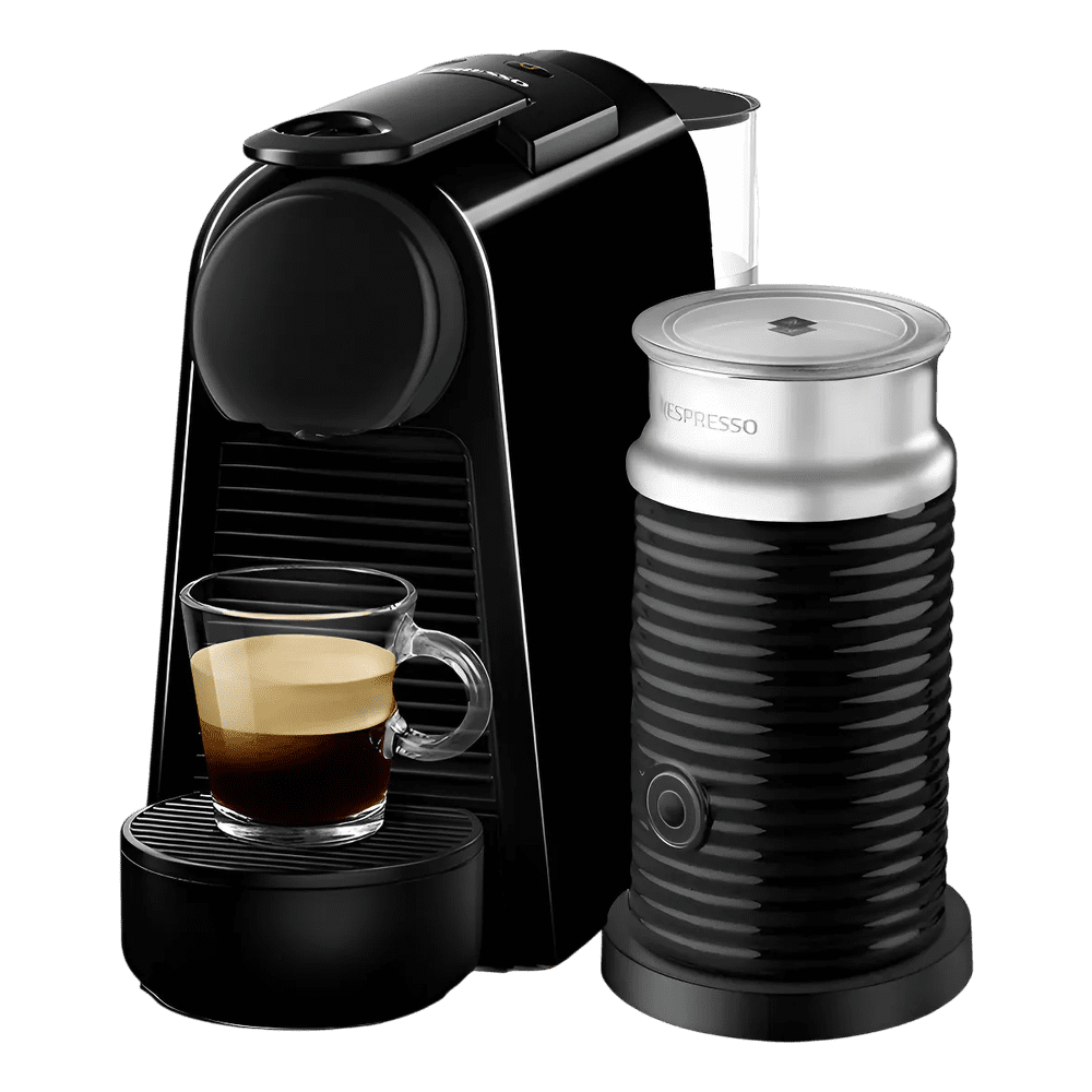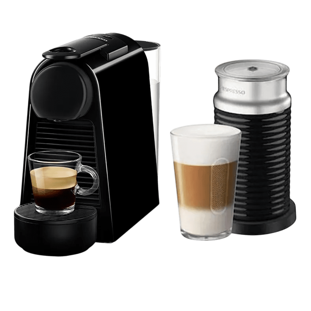 Cafetera Nespresso Essenza Mini Black con Aeroccino: pequeña, elegante y con espumador para preparar cafés y cappuccinos al instante