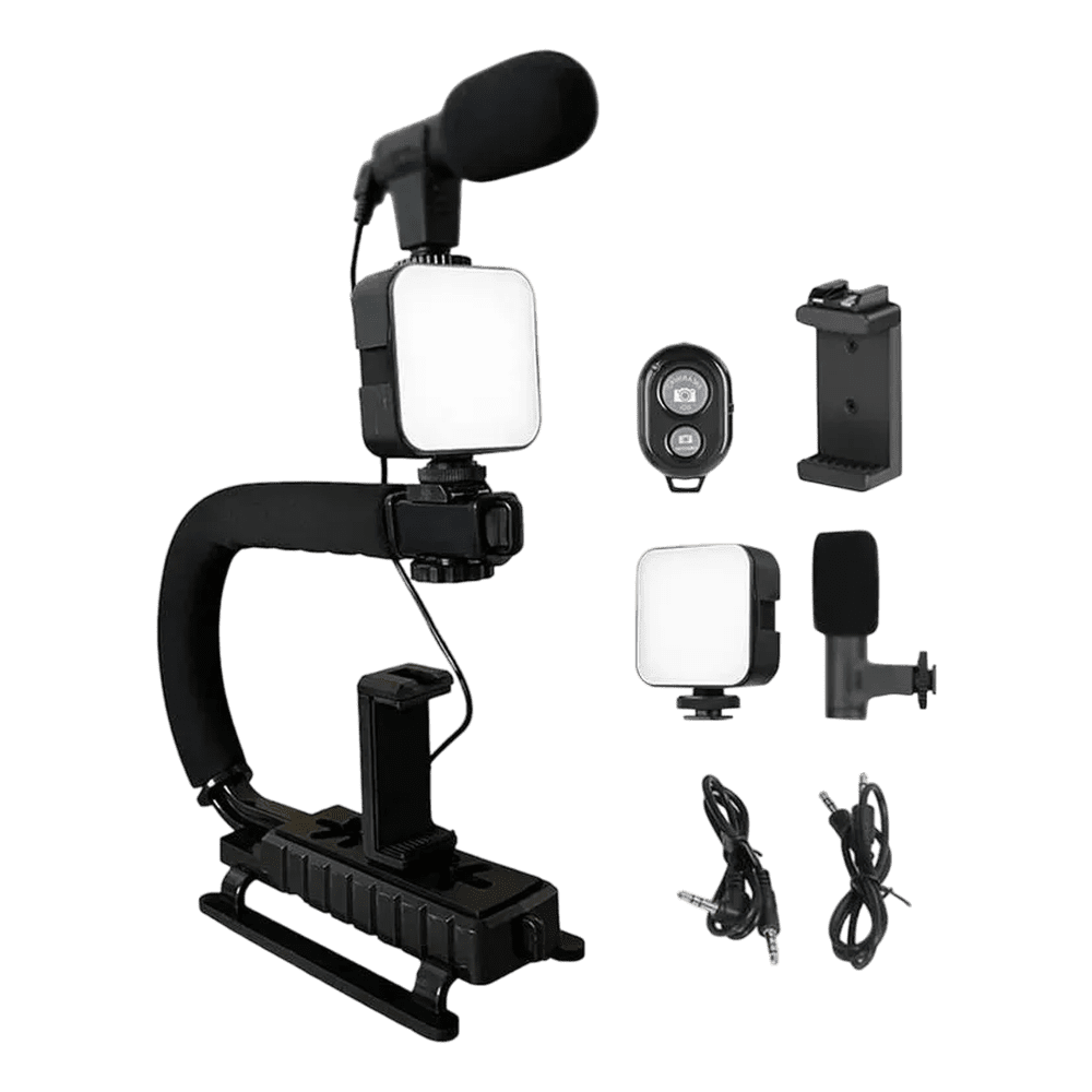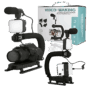Estabilizador Video Making con soporte universal para cámara o celular, empuñadura antideslizante y montaje para luz y micrófono. Ideal para grabaciones fluidas y profesionales.