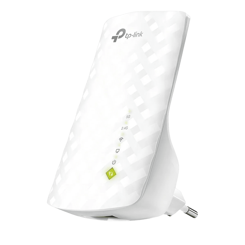 Extensor WiFi TP‑Link RE200 AC750 de doble banda hasta 750 Mbps con puerto Ethernet y diseño compacto, ideal para eliminar zonas muertas en el hogar u oficina.