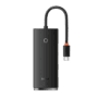 Hub USB-C Baseus con 4 puertos USB-A 3.0 y cable de 25 cm. Ideal para expandir la conectividad en laptops, tablets y más, con velocidad de transferencia de hasta 5Gbps.