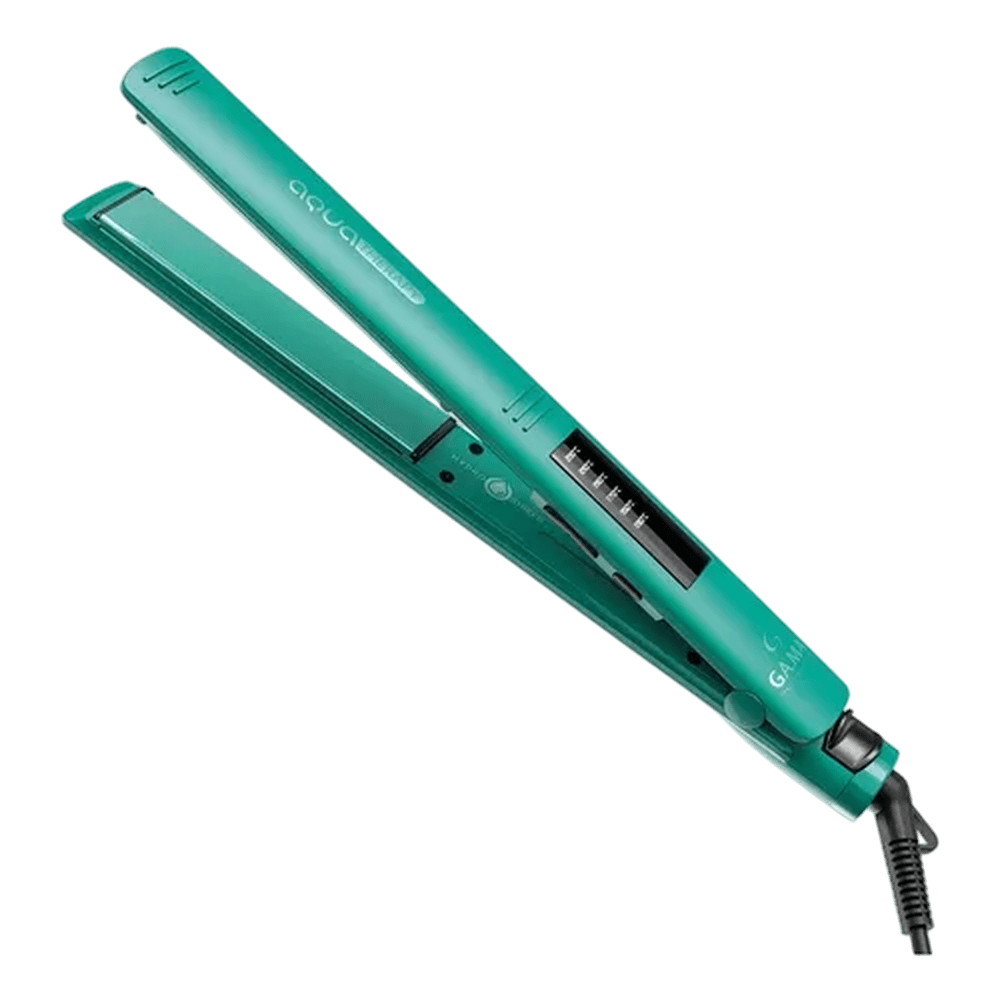 Plancha profesional con tecnología Aqua Therapy, que hidrata y protege el cabello durante el alisado. Sus placas flotantes distribuyen el calor de manera uniforme, evitando daños y dejando un acabado suave, brillante y saludable.