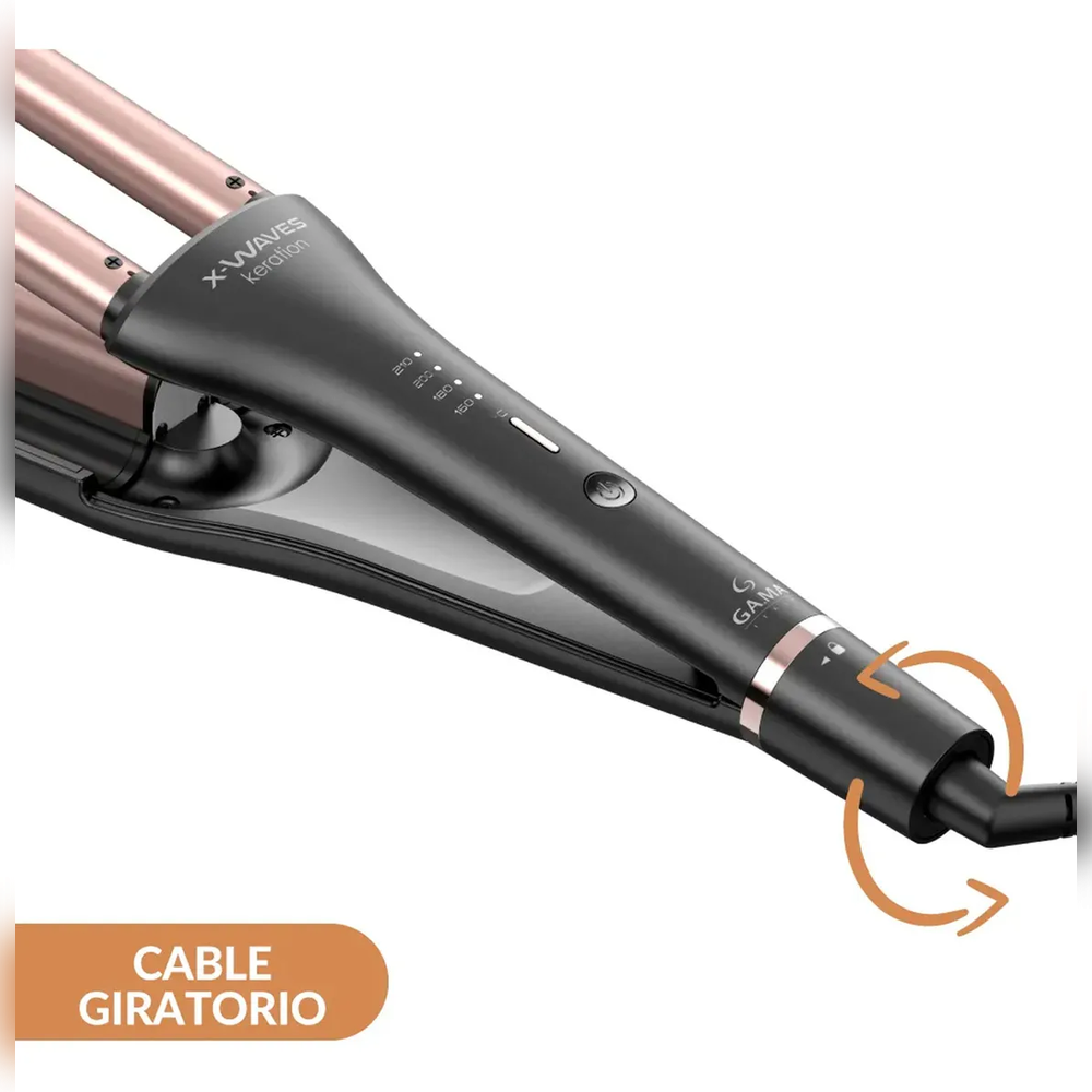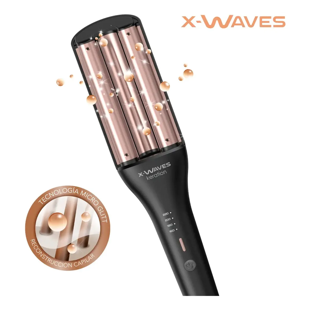 Rizador Gama XWaves Keration con recubrimiento de queratina y tecnología cerámica. Lográ ondas suaves, brillantes y duraderas cuidando tu cabello en cada uso.