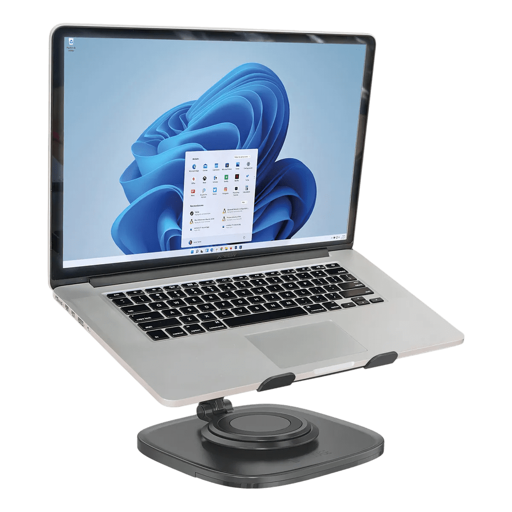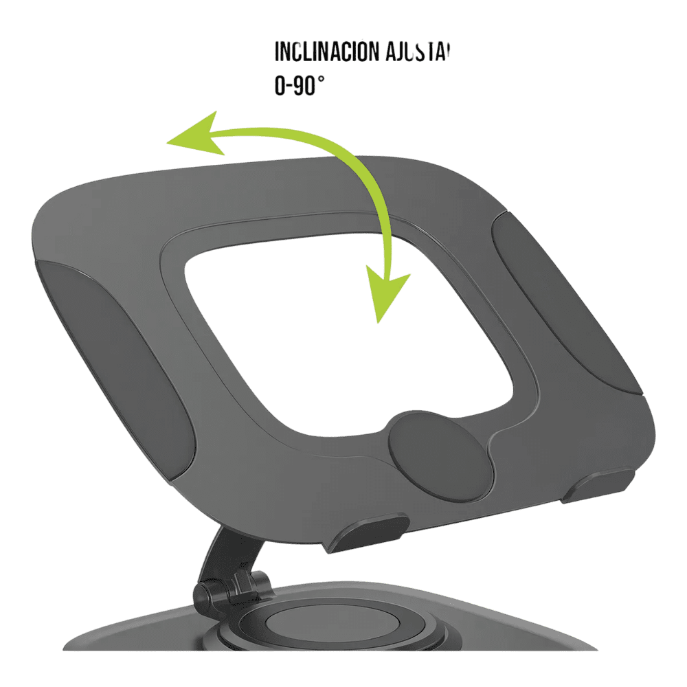 Soporte giratorio MICROCASE SGN-1000 con base 360° y altura ajustable, ideal para mejorar la postura y la ventilación de tu notebook.