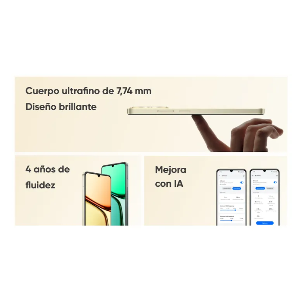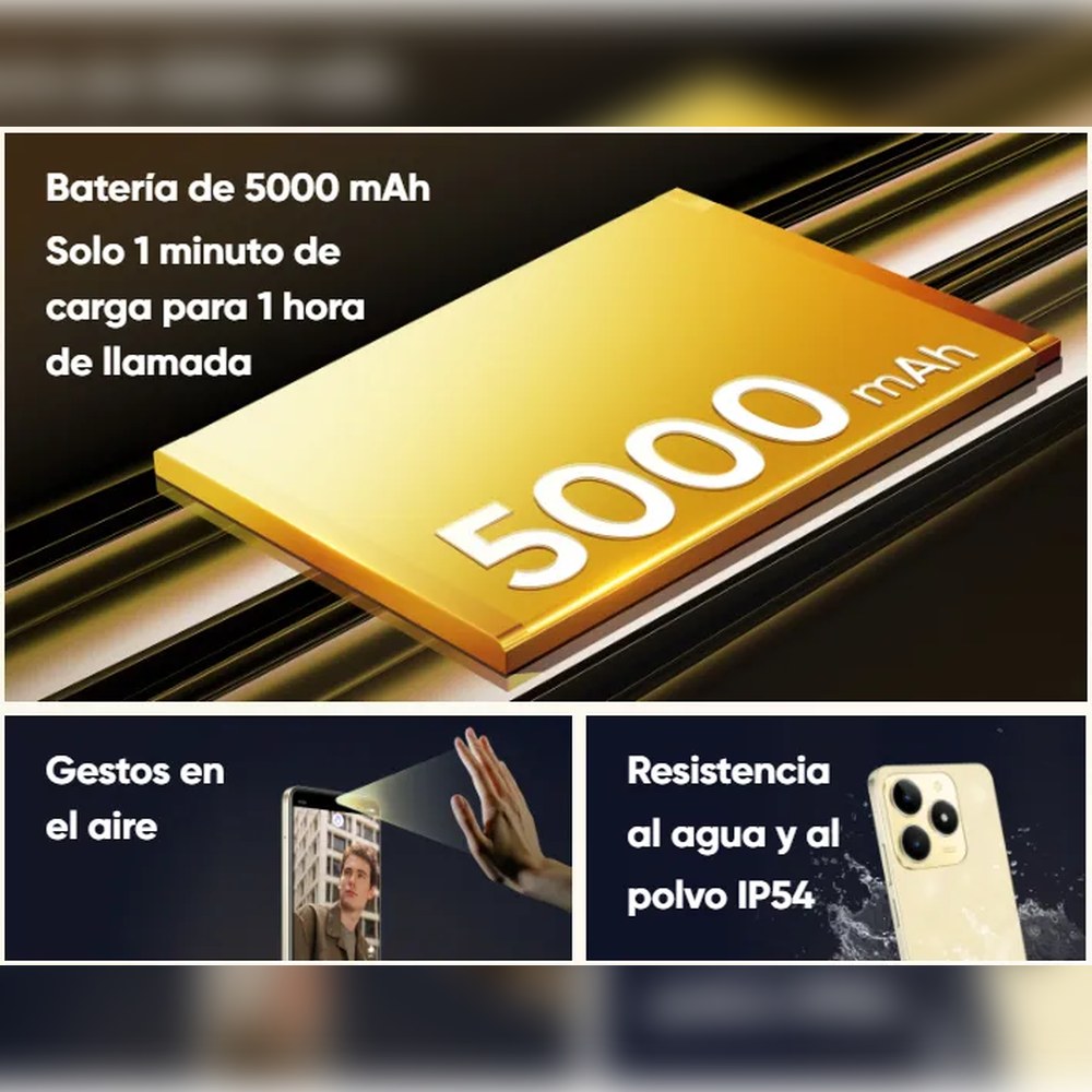 El Realme Note C61 es un smartphone pensado para el uso diario, combinando gran capacidad de almacenamiento con un diseño resistente y confiable. Su pantalla amplia de 90 Hz ofrece una experiencia visual fluida para redes sociales, videos y navegación, mientras que su cámara de 50 MP permite capturar fotos claras en distintas condiciones. Ideal para quienes buscan un equipo equilibrado, con buena autonomía y espacio de sobra para apps, fotos y archivos.
