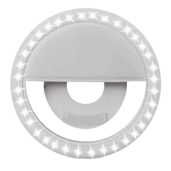 Soporte para smartphone ajustable en el centro del aro para facilitar grabaciones o selfies
