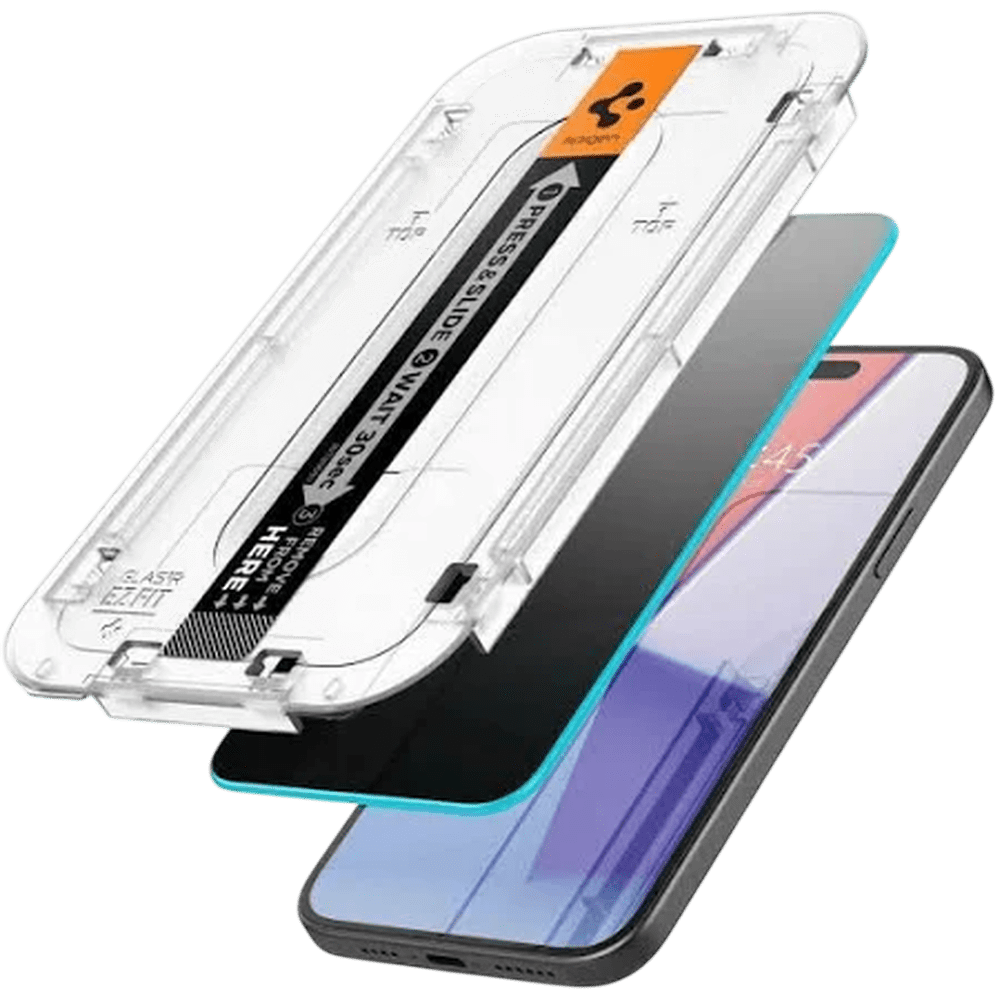 Vidrio templado Spigen con protección de privacidad que cuida tu pantalla y evita miradas laterales sin afectar el uso táctil.